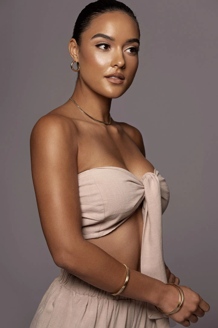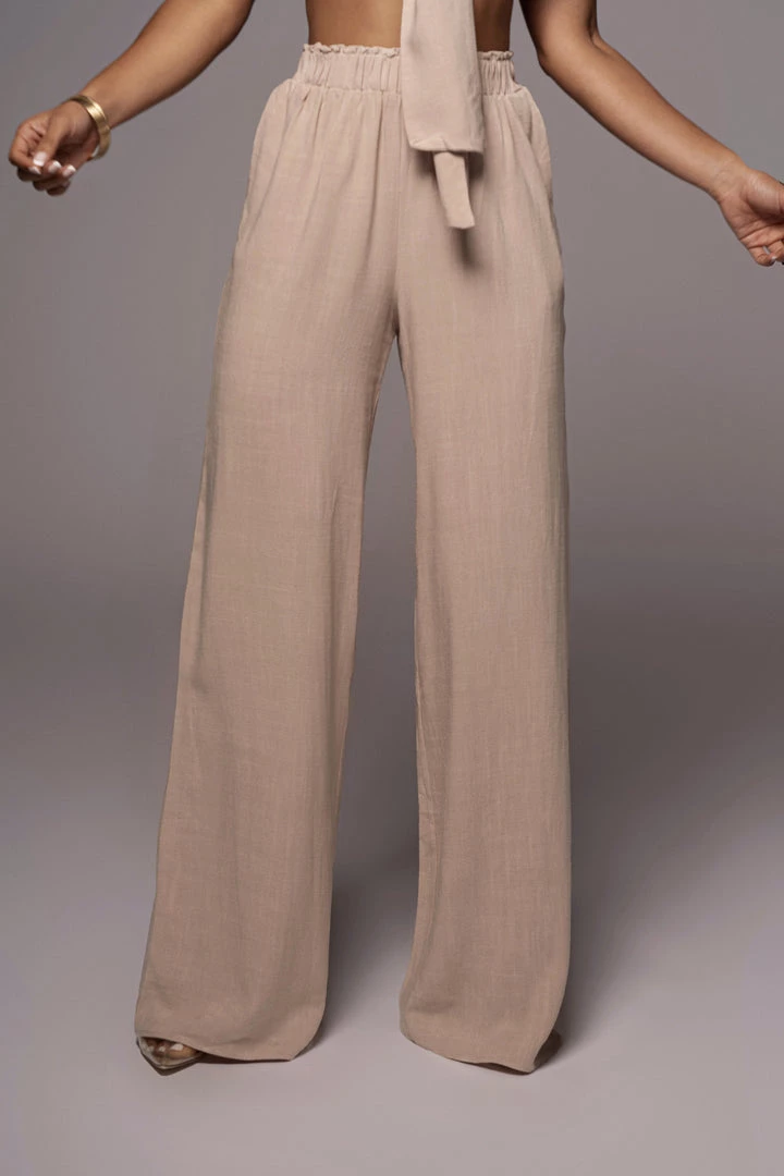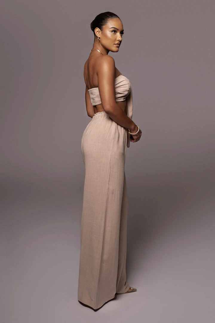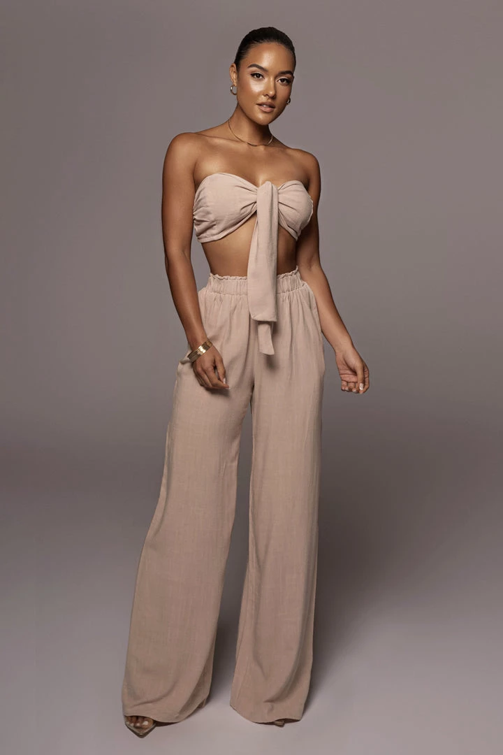 EXCLUSIVELY DESIGNED BY US FOR YOU. Our BEIGE MORE LOVE LINEN SET has taken over! If you love our Tory Two Piece Set, you’ll have more to fall with our new design crafted in stretch linen for a flexible and comfy feel. Featuring an alluring bralette top with an adjustable front tie and a smocked elastic back. The matching pants to this two piece set are topped with a high elastic waistband, wide leg hems, and functional side pockets. Both pieces are so easy to mix and match you’ll find yourself reaching for them on repeat. Stretchy. Sold as set.