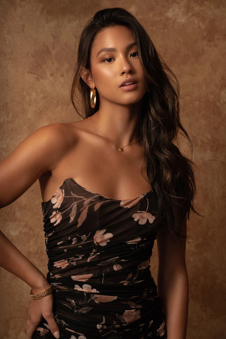 EXCLUSIVELY DESIGNED BY US FOR YOU. Spend summer nights in our BLACK FULL BLOOM CORSET! Designed in lightweight chiffon, this corset features a round neckline with pointed details, a ruched bodice, and boning throughout with a back zipper closure. Touches of modern florals take this corset top to dreamy levels. Complete with grip silicone gel at the bust for a secure hold. Pair with our FLORAL DELILAH MESH SKIRT for the full look. Some stretch.Â