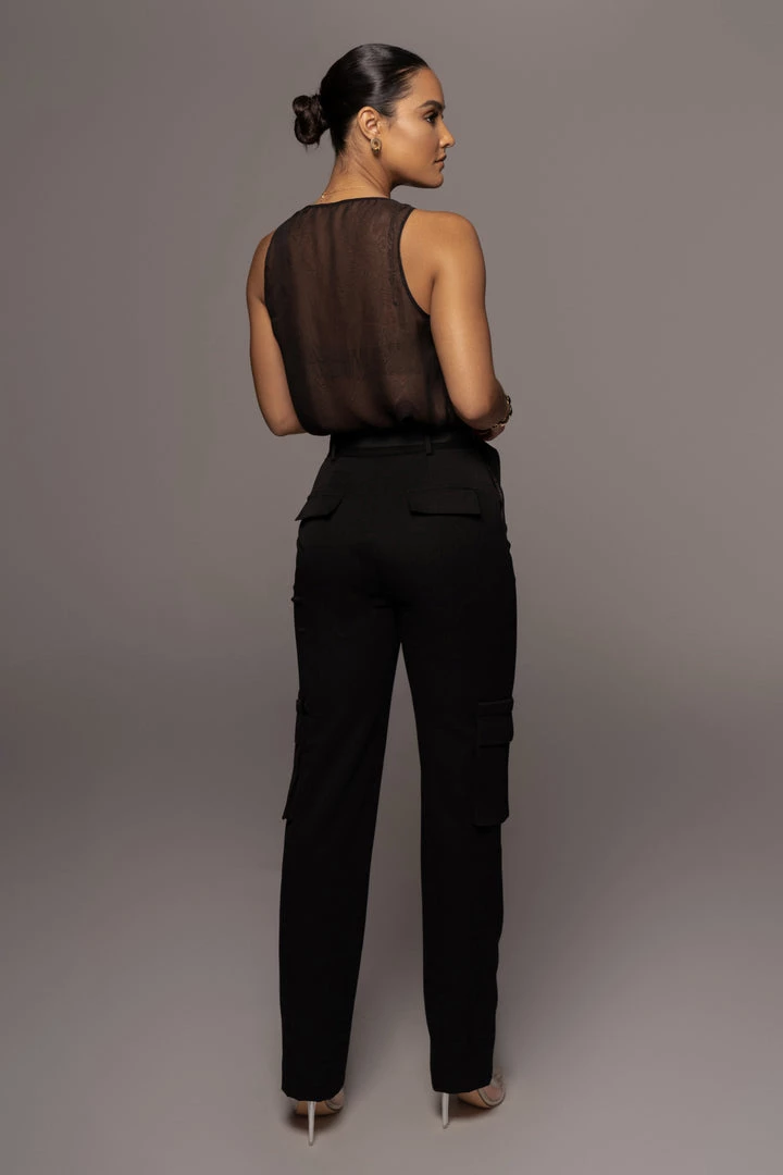 EXCLUSIVELY DESIGNED FOR YOU BY US. Match anything in your closet with our BLACK HARLYN REVERSIBLE TOP! Designed in see through mesh, this classic cut top highlights a scoop neckline with tank shoulders and a cropped hem. Wear in many ways, this lightweight crop top is designed with a reversible feature consisting of a rich chocolate hue for dressing options. Pair with the MAYLIN PANTS for the full look. No stretch.