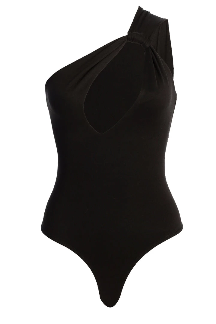 EXCLUSIVELY DESIGNED BY US FOR YOU. You’ll find a shade for every mood in our BLACK PRISCILLA KEYHOLE BODYSUIT! This ultra smooth and soft bodysuit features a one shoulder neckline with a sexy keyhole cutout at the chest for a glamorous touch! Complete with thong back and snap button closures. Stretchy.