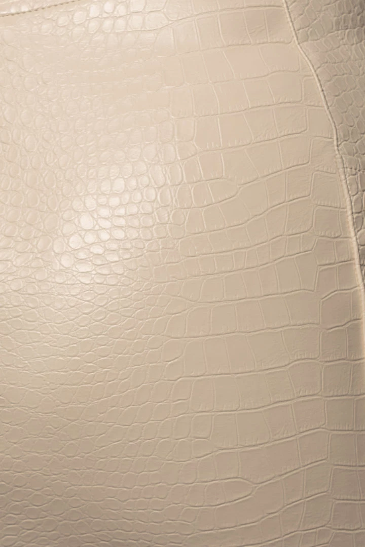 EXCLUSIVELY DESIGNED BY US FOR YOU. From work meetings to a night out for drinks, the BUTTERCREAM DELISA CROC SKIRT will leave its mark every time! Crafted in an alluring croc embossed fabric, this high waisted skirt comes with boning at the waist for a figure flattering fit, two side pockets, and a lower slit located in the center back. Complete with suede like interior for comfort and hidden back zipper closure. Pair with our JAELYN CORSET TOP for the full look. Minimal stretch.