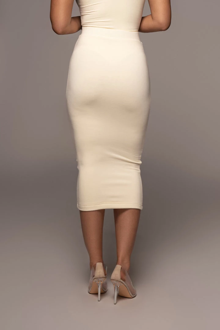 EXCLUSIVELY DESIGNED BY US FOR YOU. You’ll be immediately drawn to our BUTTERCREAM LEILAH MIDI SKIRT. Designed with comfort in mind, this timeless pencil style skirt can be worn in so many ways. Topped with an elastic waistband for a cinched waist and minimal seams for a smooth finish. Pair with our SAMERA ONE SHOULDER BODYSUIT for the full look. Double lined. Stretchy.