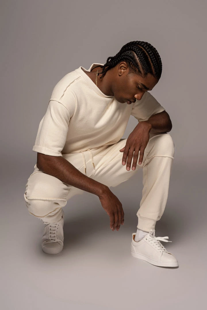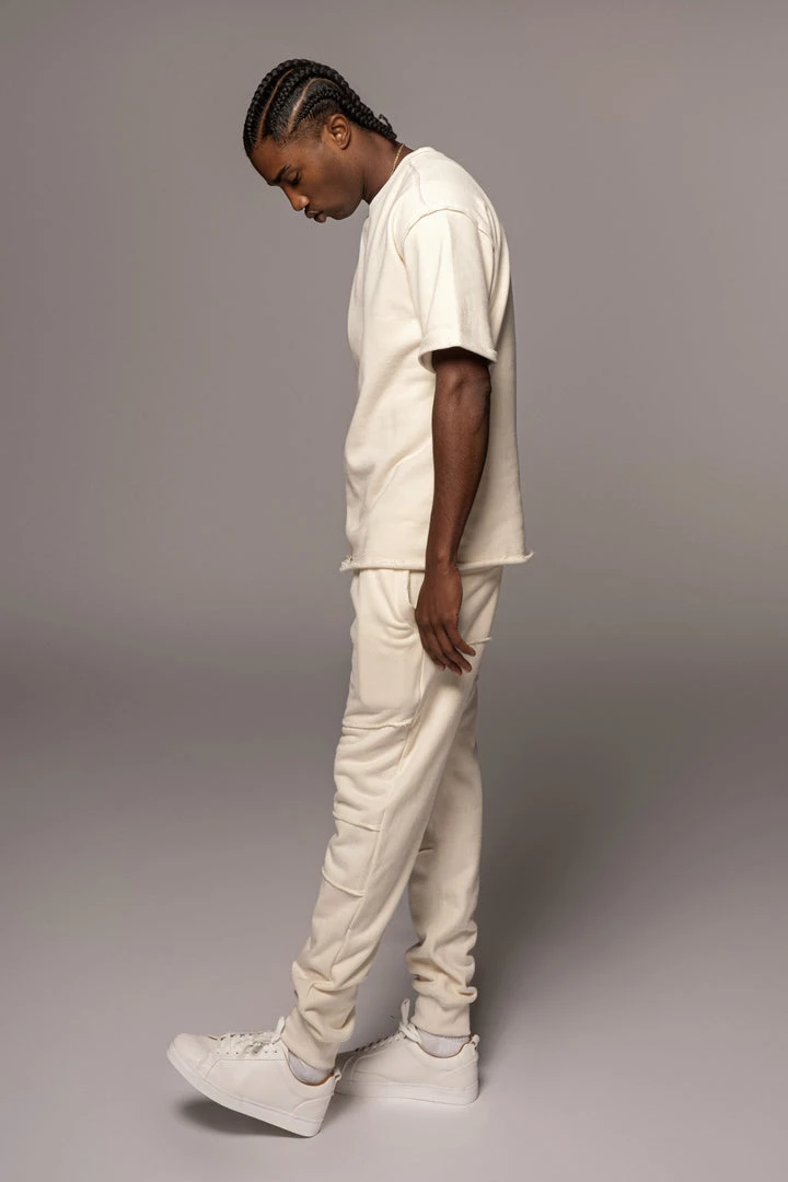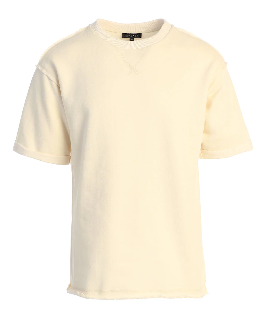 EXCLUSIVELY DESIGNED BY US FOR HIM. Never ending comfort is within reach in our BUTTERCREAM LOGAN RAW EDGE TEE! This oversized short sleeve tee features a crew neckline with edgy raw cut hems and rolled up sleeves for a modern touch. Made in a soft and stretchy blend for superior fit and comfort. Coordinate the full look with our KALEB MEN’S JOGGERS and JORDYN MEN’S ZIP UP. Stretchy.