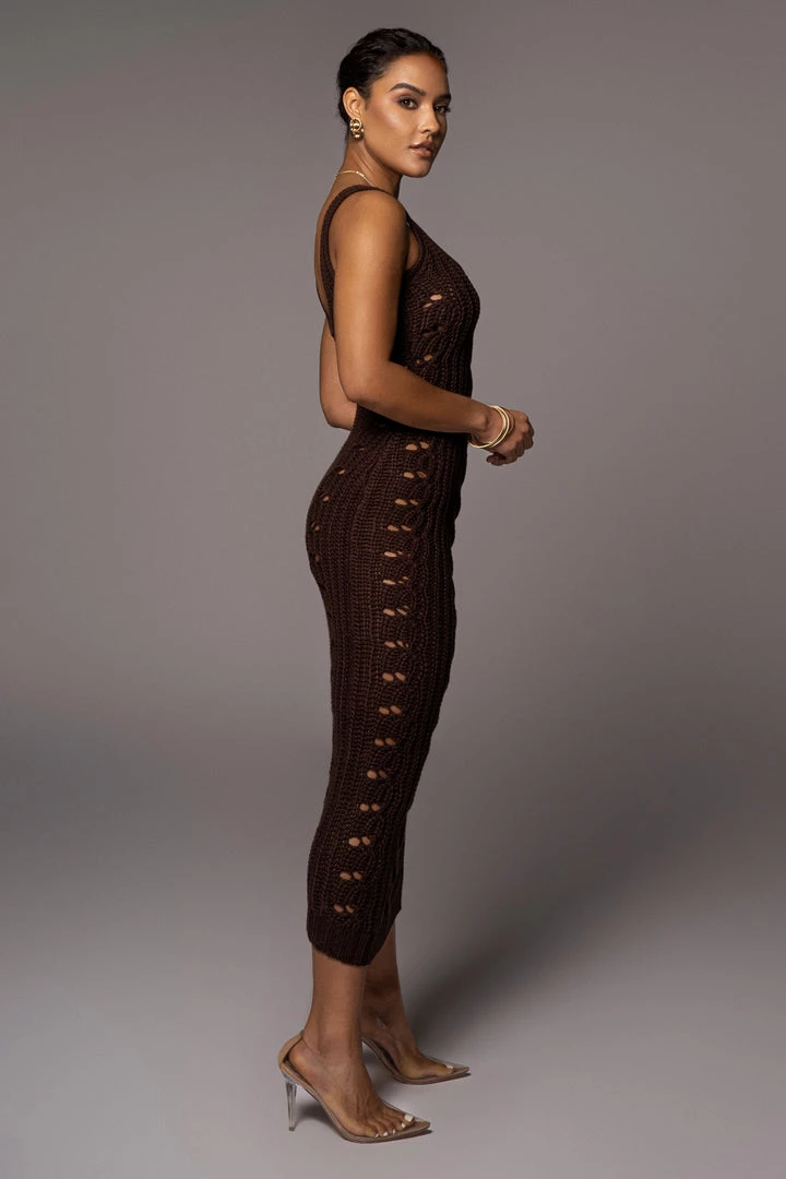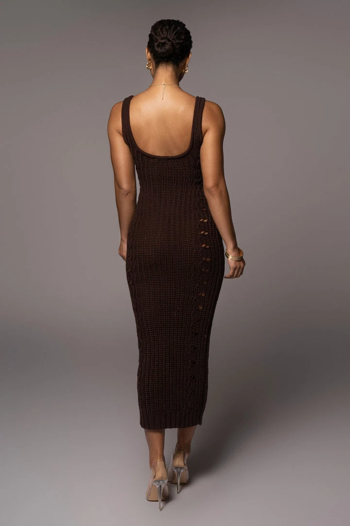 EXCLUSIVELY DESIGNED BY US FOR YOU. The ultimate knit dress has arrived! Whether it’s cold or warm outside, our CHOCOLATE AMERI CABLE SWEATER DRESS keeps you on a stylish note all year round! Featured in a thick cable knit fabric with u neckline, tank shoulders, and a maxi length hem. Open knit detailing on both sides adds a chic finishing touch! Some Stretch.