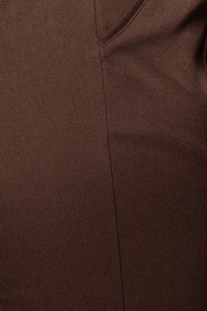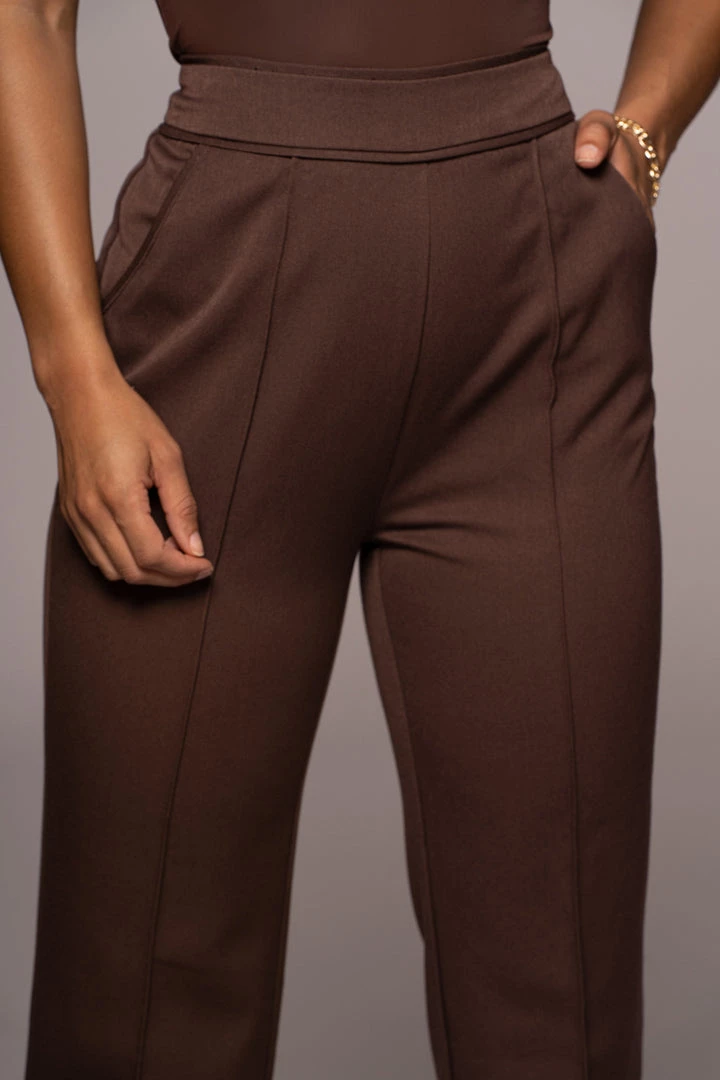 EXCLUSIVELY DESIGNED BY US FOR YOU. Our CHOCOLATE PALOMA TAILORED TROUSERS are the pants to look out for this season! Topped with a thick waistband, these tailored trousers feature a vertical line detailing done the front/back center, functional side pockets, two faux back pockets, and classy straight leg hems. Complete with a hidden side zipper for closure. No stretch.