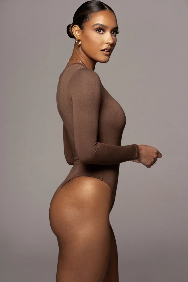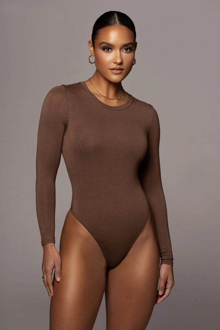 EXCLUSIVELY DESIGNED BY US FOR YOU. A new wardrobe staple has arrived with the CHOCOLATE YARA EVERYDAY SOLID BODYSUIT! This perfect crew neck bodysuit features long sleeves with a thong bottom and snap closures. Crafted of a smooth double lined jersey fabric for a soft touch.