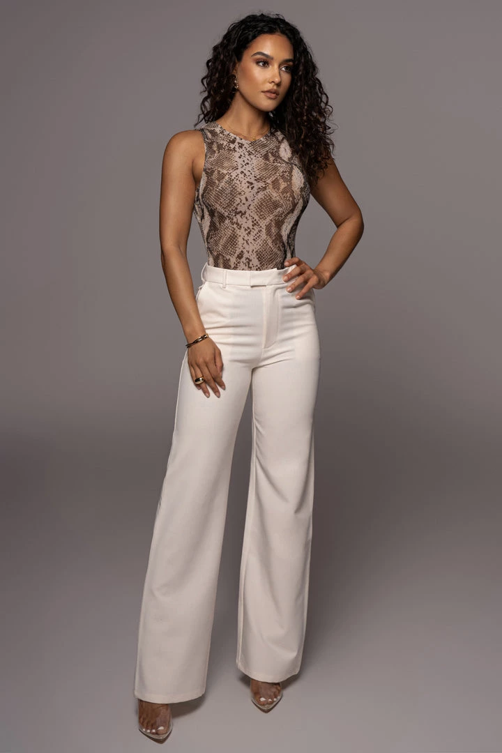 EXCLUSIVELY DESIGNED BY US FOR YOU. Our COBRA GET EVEN BODYSUIT is a sleeveless bodysuit designed of stretchy mesh fabric in an enticing snake print pattern. Featuring a high neckline, sleeveless arms, and a thong bottom with double snap closure. Get the full look with our LEWIN TAILORED TROUSERS for an effortlessly sleek finish! Stretchy. Nude mesh lining.