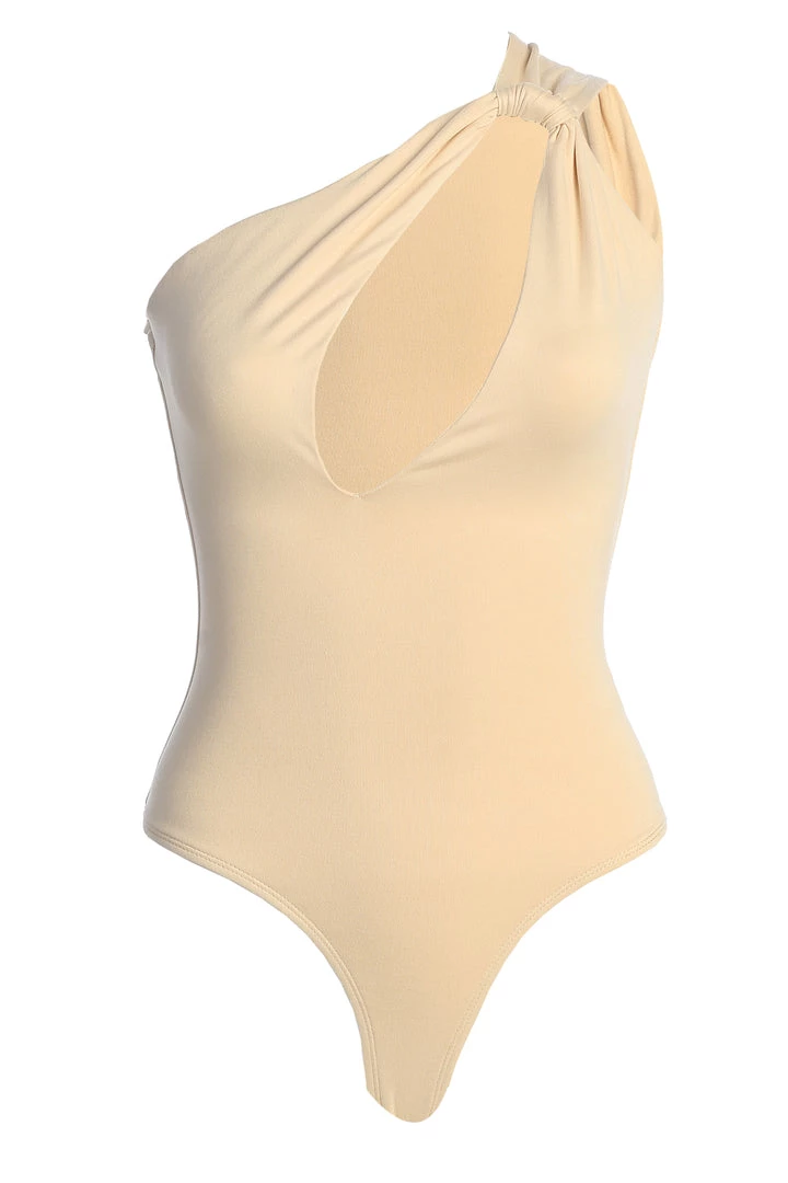 EXCLUSIVELY DESIGNED BY US FOR YOU. You’ll find a shade for every mood in our CREAM PRISCILLA KEYHOLE BODYSUIT! This ultra smooth and soft bodysuit features a one shoulder neckline with a sexy keyhole cutout at the chest for a glamorous touch! Complete with thong back and snap button closures. Pair with our JLUXBASIX SOFT LEGGINGS for the full look. Stretchy.