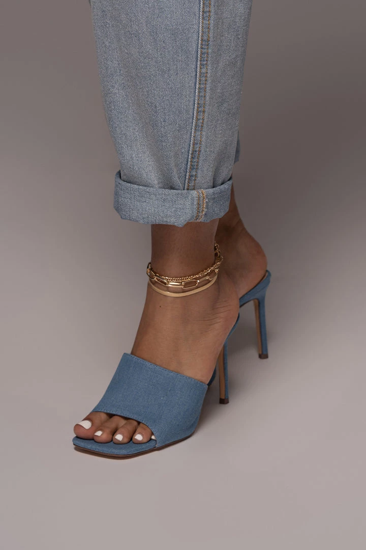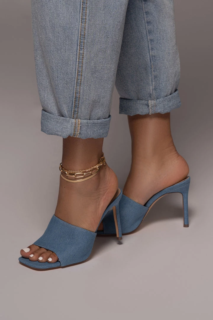 Slip into the DENIM ALAINE SQUARE TOE HEELS for an eye catching look that’s as chic as you! Featured in denim like fabric, this pair of modern heels come with a trendy square toe footbed, a slender heel, and an easy slide on design making them the perfect shoe addition to any outfit! Padded insole for comfort.