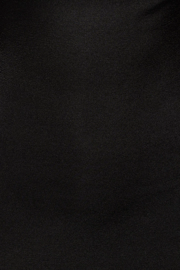 EXCLUSIVELY DESIGNED BY US FOR YOU. Crafted in our signature double lined slinky fabric, our BLACK MODERN MUSE MINI DRESS defines glam, class, and comfort! Our best seller, the Amarie Rhinestone Dress has been redesigned is an all new version for new elegance! This one shoulder midi dress features a cowl neckline with a thin camisole strap and thin gold tone metal strap that comes complete with a removable lobster claw clasp. The solid strap is not adjustable. Stretchy.