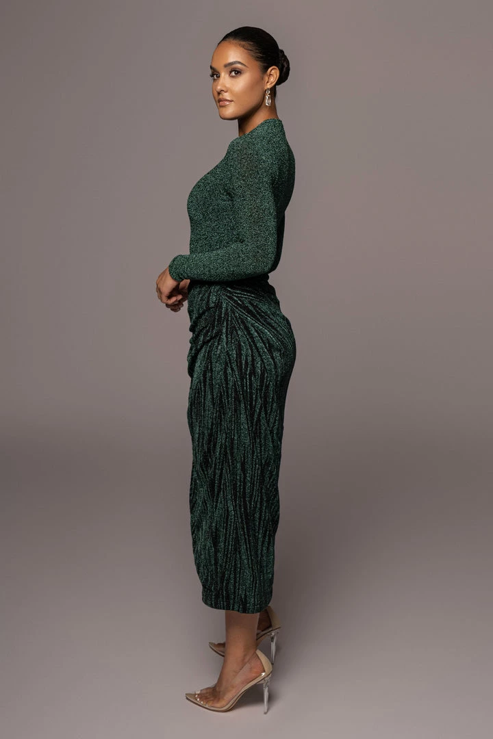 EXCLUSIVELY DESIGNED BY US FOR YOU. We are living on the wild side with our GREEN/BLACK UNTAMED SLIT DRESS. Featuring a beautiful mix of soft texture and print, this design comes with a crew neckline bodysuit. The lower waist of the dress highlights a print wrap skirt that ties on one side creating a knotted detail with a flattering slit. Stretchy. Interior lining.