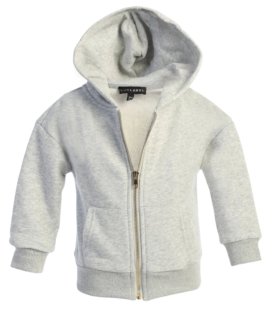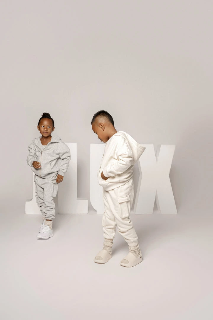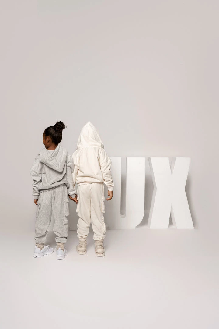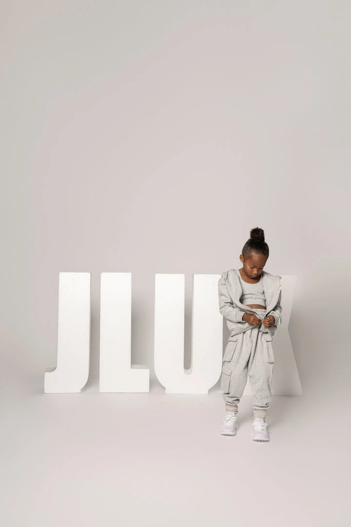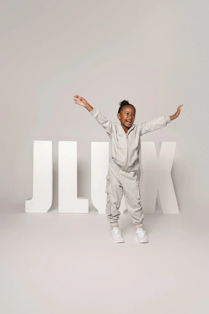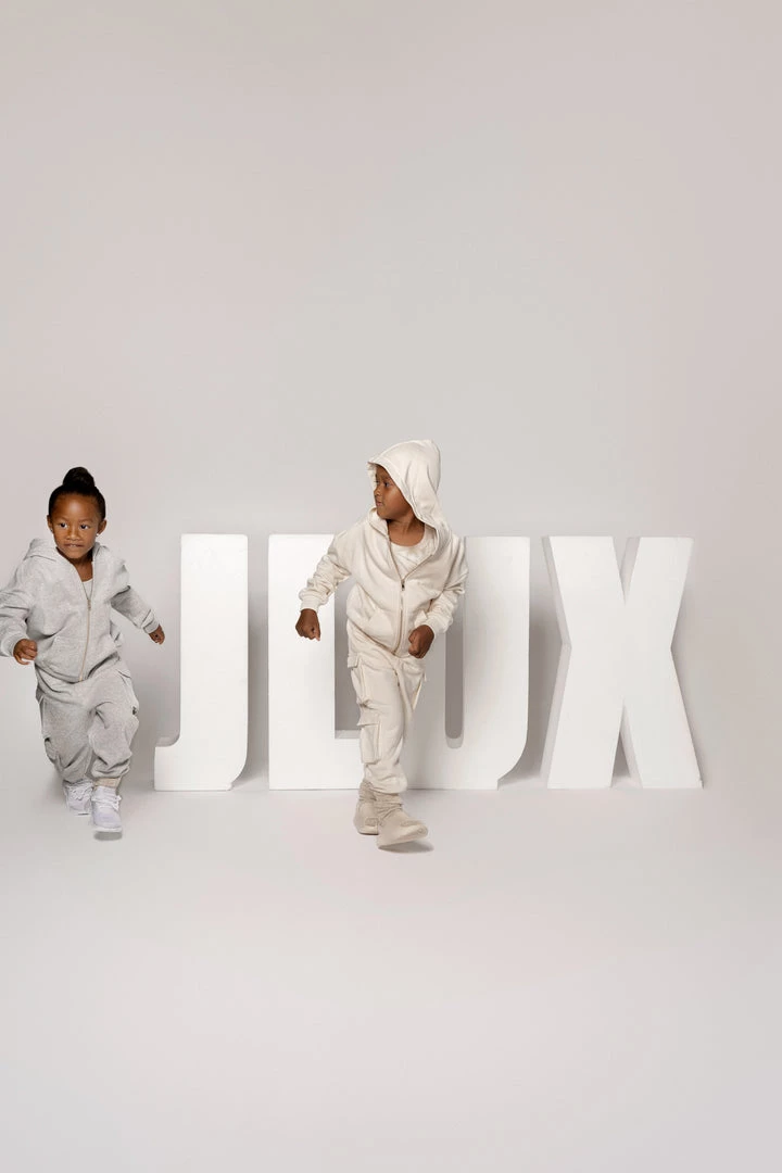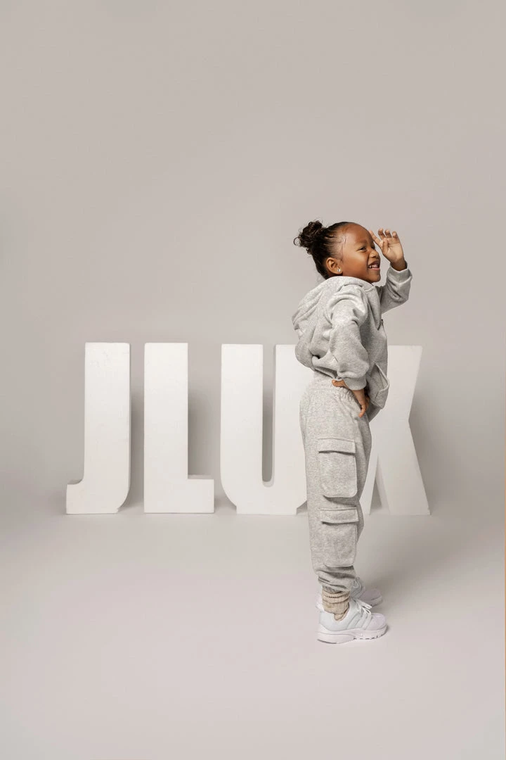 EXCLUSIVELY DESIGNED BY US FOR YOU. Have the little ones matched to perfection in our limited edition GREY JLUXKIDS FLEECE UNISEX HOODIE! This miniature zip-up sweatshirt is the only clothing your child will want to live in this season! Cut in a stylish oversized fit, featuring a hooded neck with drawstrings, front zip-up closure, a split kangaroo pocket, and ribbed bands at the cuffs and hem. Pair with our JLUXKIDS UNISEX CARGO JOGGERS for a look that complements your child’s style! Stretchy. Gold tone hardware.