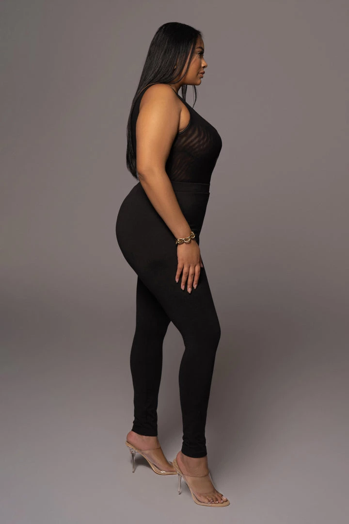 EXCLUSIVELY DESIGNED BY US FOR YOU. The leggings of the year are finally here! Our JLUXBASIX BLACK SOFT LEGGINGS were made for a sleek and classy finish! Designed in our double lined jersey fabric, these high waist leggings are topped with an elastic waistband and come with skinny leg hems. Dressed up or down, you’ll want to wear these soft feel leggings all week. Pair with the MESH ESSENTIALS TANK BODYSUIT UNDERGARMENT for the full look. Stretchy.Â