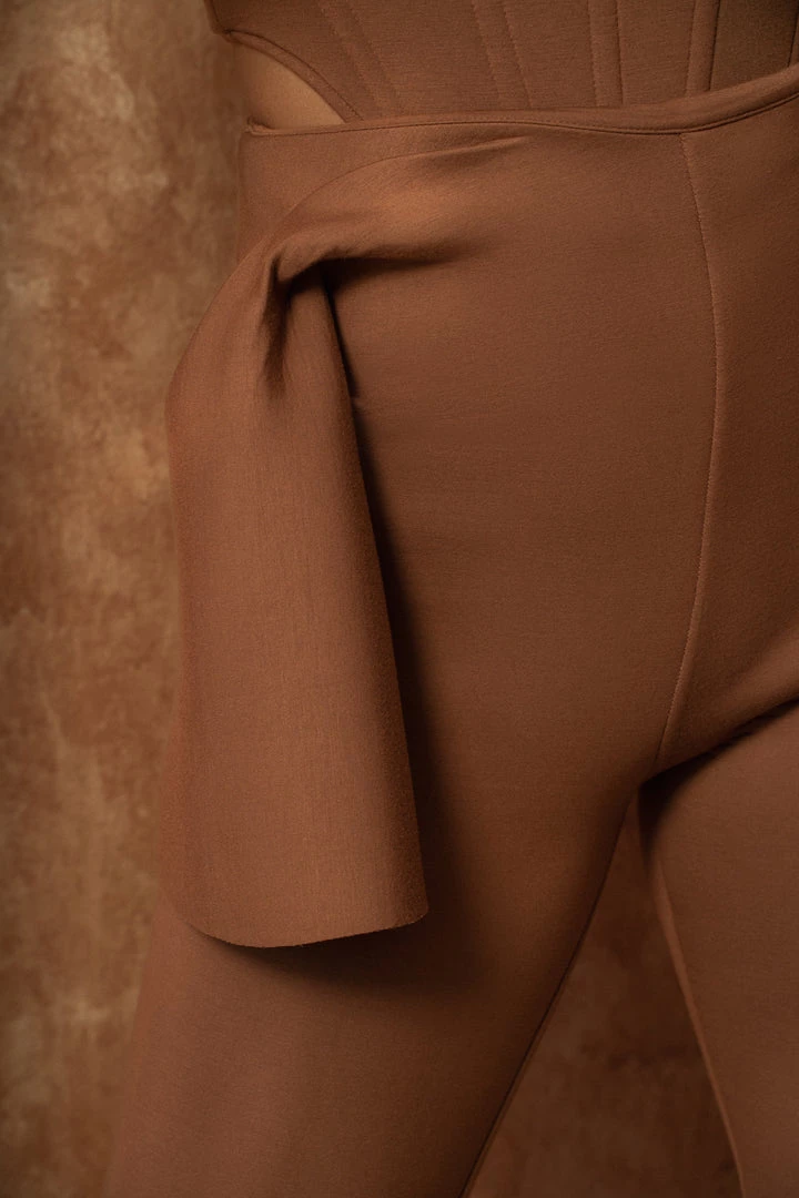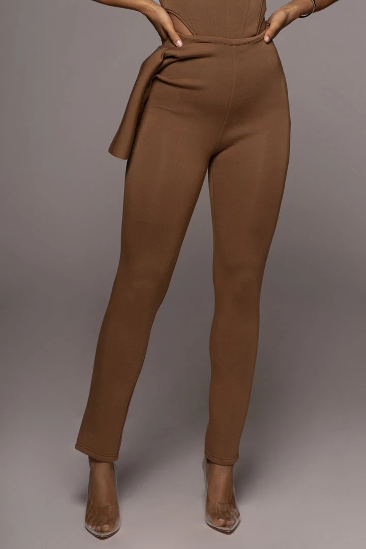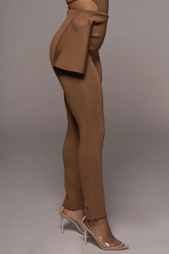 EXCLUSIVELY DESIGNED BY US FOR YOU. Our LATTE ABRIL HIGH WAIST PANTS feature a classic silhouette with a contemporary twist! Classy high waist pants detailing a mini drape on one side with fitted leg hems and a hidden side zipper closure. Crafted in a thick, ultra soft fabric for quality and comfort. Pair with our LET’S GET LOST CORSET for the full look. Stretchy.