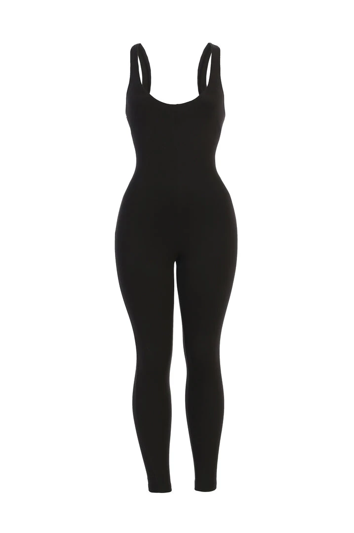 EXCLUSIVELY DESIGNED BY US FOR YOU. All eyes are on you when out in the BLACK ALO DOUBLE LAYER JUMPSUIT! This versatile, sleeveless jumpsuit features a body forming silhouette with a low scoop neck, tank shoulders, and skinny leg hems. Designed in smooth double lined jersey fabric for compression support. Style it as a layer or by itself, either way, your look will be irresistible! Stretchy.