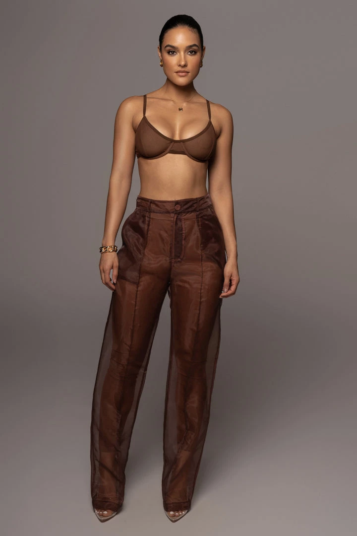 *The LIVY ORGANZA PANTS are designed to be sheer. To style them as shown use our PECAN NINA MESH PANTS as an undergarment for layering coverage. Sold Separately.