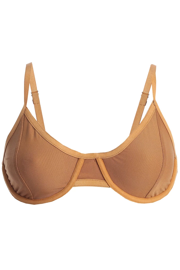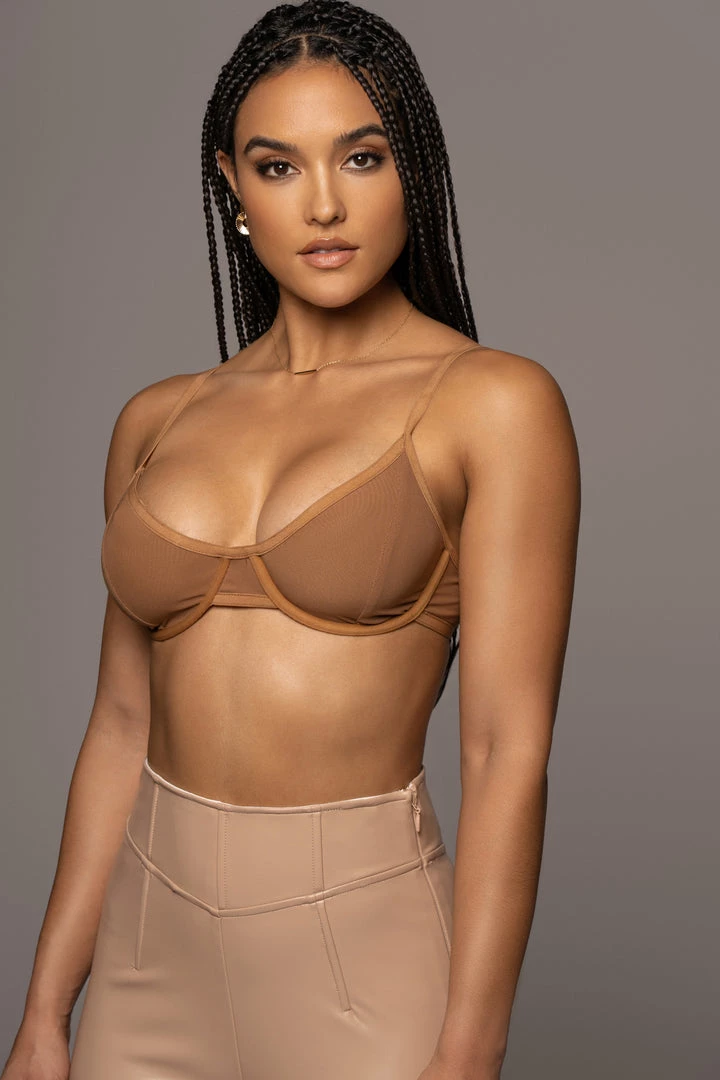 EXCLUSIVELY DESIGNED BY US FOR YOU. Our PECAN JONI BRALETTE is endlessly versatile! This flirty bralette comes with underwired cups for support, adjustable shoulder straps, and adjustable triple back hook and eye closure. Designed in a mesmerizing sheer mesh fabric, this staple piece takes any look to a polished level. Interior lining for some coverage. Pair with the LORIA BLAZER and NO REGRETS HIGH WAISTED PANTS for the full look. Stretchy.