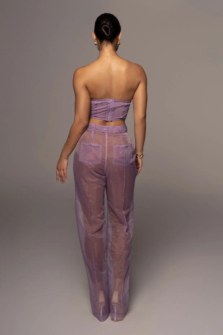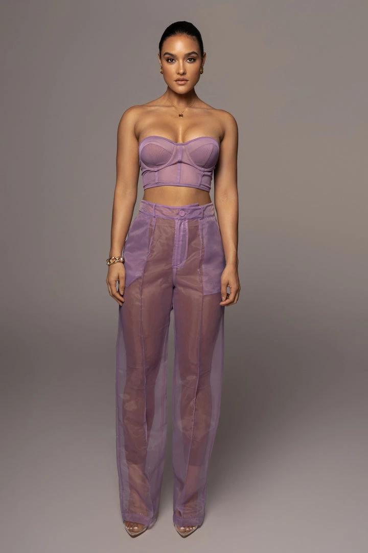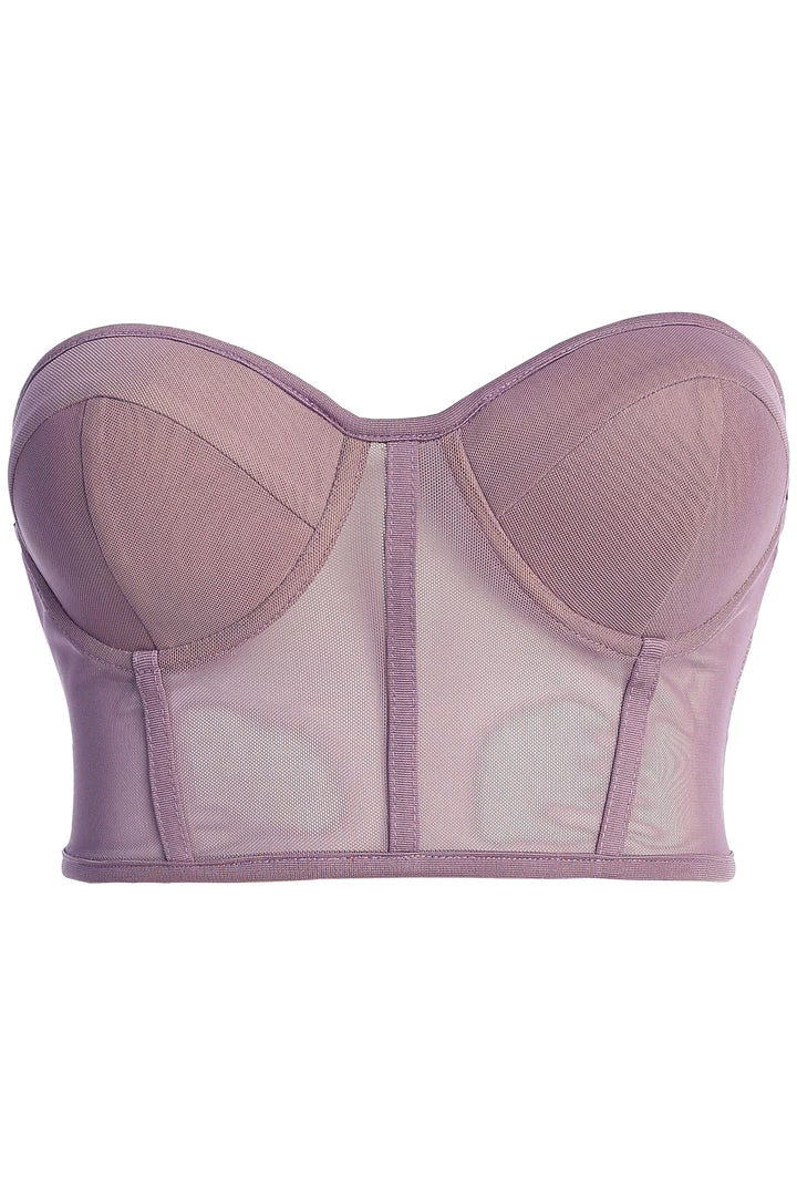 EXCLUSIVELY DESIGNED BY US FOR YOU. Our current corset obsession only gets better with the PURPLE SHAYLA BUSTIER! Featuring a strapless design with a sweetheart neckline and padded cups for support. Stunning boned trim detail throughout adds a finishing touch! Crafted in stretchy sheer mesh, this piece is one you can wear with anything. Adjustable hook and eye back for closure. Pair with the JEANNA COAT and LIVY ORGANZA PANTS for the full look. Stretchy.