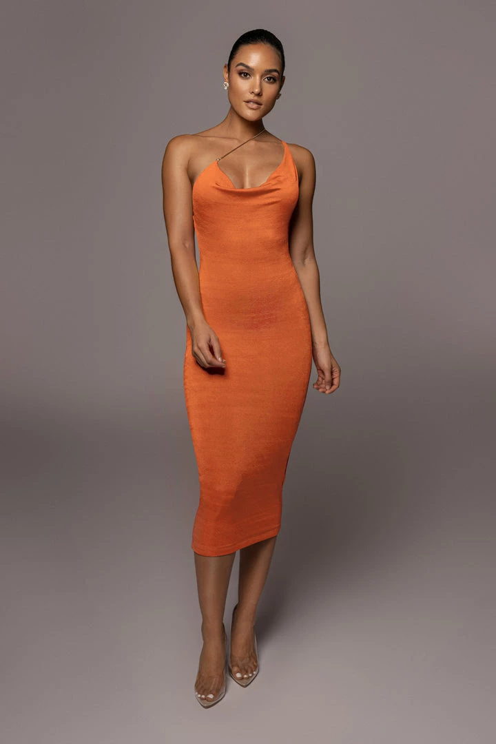 EXCLUSIVELY DESIGNED BY US FOR YOU. Crafted in our signature double lined slinky fabric, our MAUVE MODERN MUSE MINI DRESS defines glam, class, and comfort! Our best seller, the Amarie Rhinestone Dress has been redesigned is an all new version for new elegance! This one shoulder midi dress features a cowl neckline with a thin camisole strap and thin gold tone metal strap that comes complete with a removable lobster claw clasp. The solid strap is not adjustable. Stretchy.