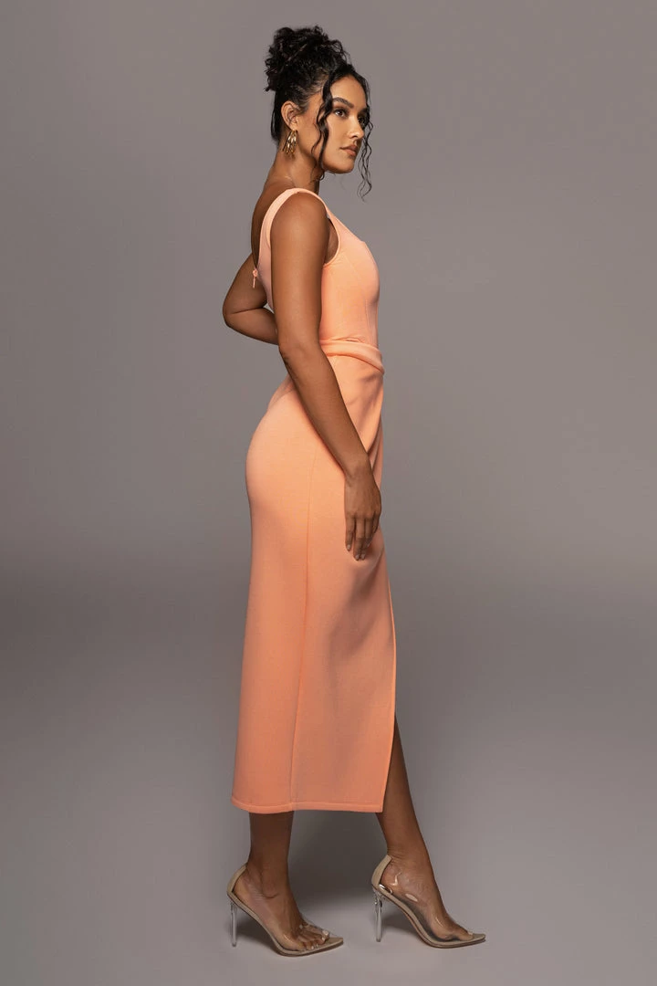 EXCLUSIVELY DESIGNED BY US FOR YOU. Our PEACH ROXANNE SLIT SKIRT is at the top of our list this season. Crafted in an ultra soft fabric, this classy skirt highlights an elegant drape detail with a side slit for extra style. Back zipper for closure. Pair with our LET’S GET LOST CORSET for the full look. Stretchy.
