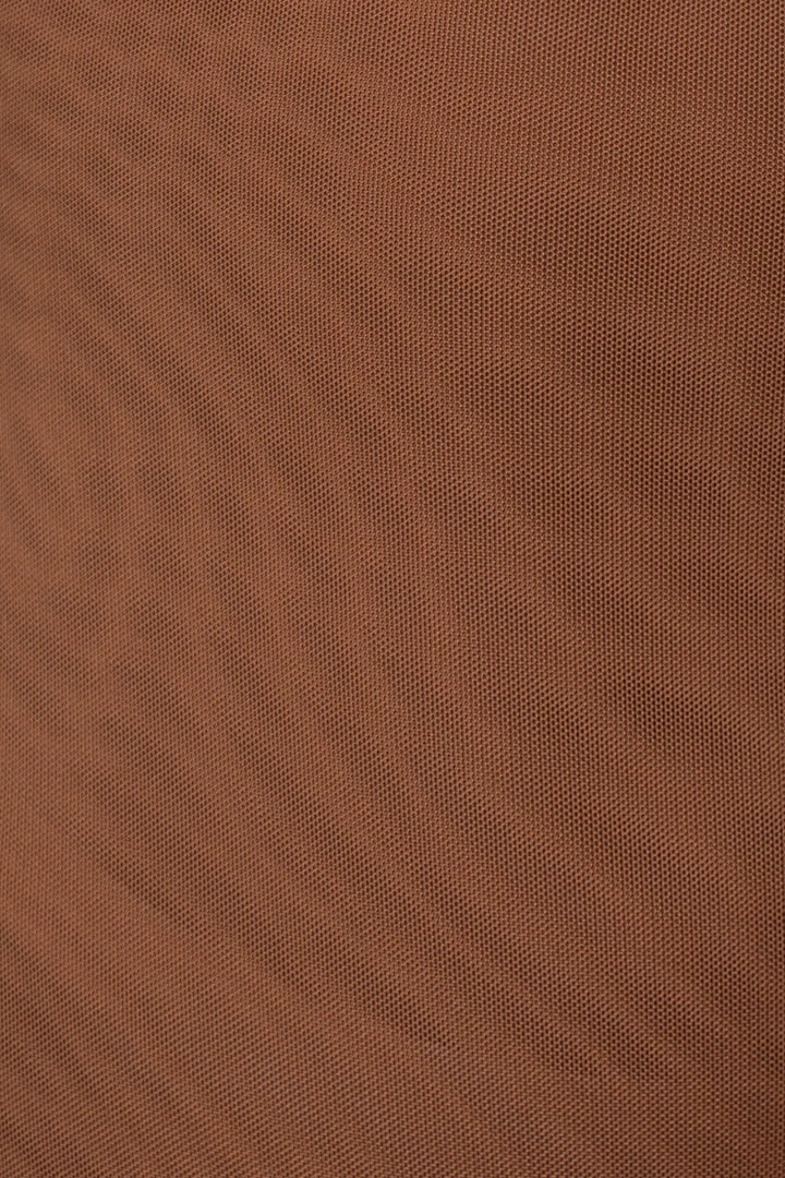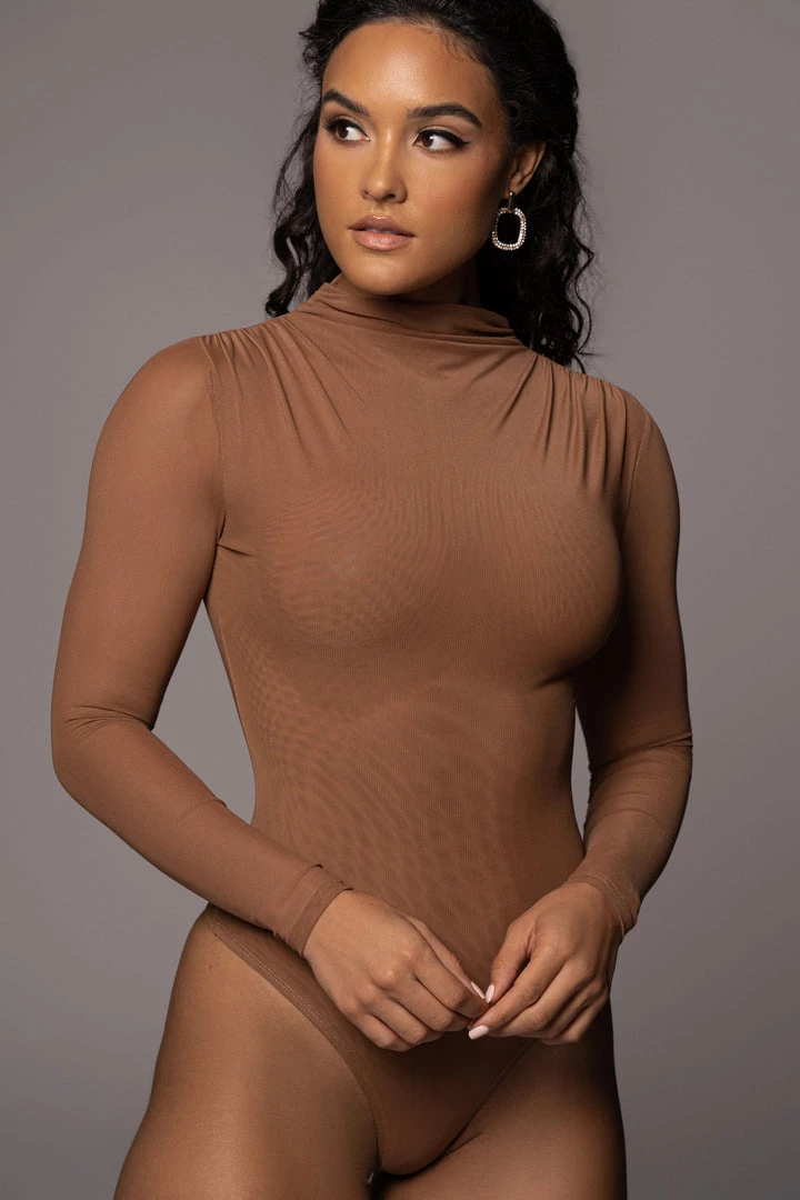 EXCLUSIVELY DESIGNED BY US FOR YOU. We can’t get enough of mesh this season! Our PECAN LINNEA MESH BODYSUIT is crafted in a smooth sheer mesh fabric for perfect comfort with breathability. Showcasing a high neckline with sheer long sleeves, ruched shoulders, and a thong bottom with double snap closure. Stretchy. Sheer lining interior.