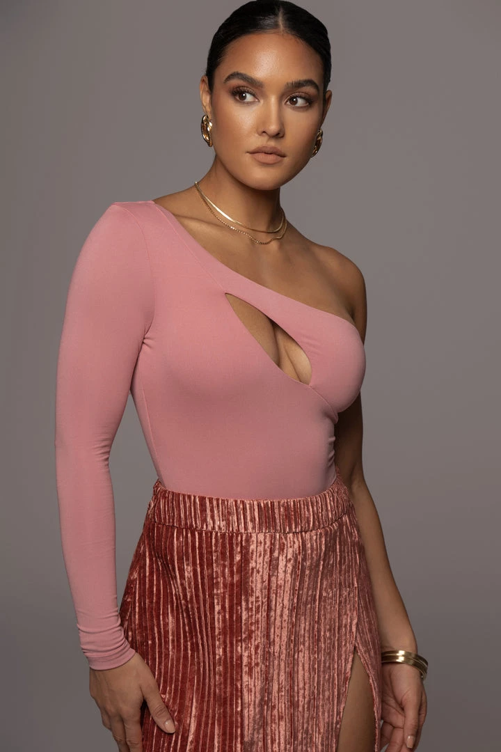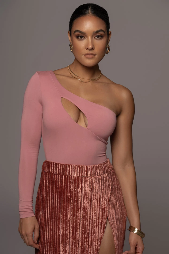 EXCLUSIVELY DESIGNED BY US FOR YOU. Our ROSE DARLA KEYHOLE BODYSUIT is a soft one shoulder bodysuit that showcases a bold keyhole at the front with a fitted long sleeve. Designed in our double line jersey fabric for compression support achieving a flattering silhouette. Complete with a thong bottom and snap button closure. Pair with your favorite bottoms for an unforgettable night out! Stretchy.