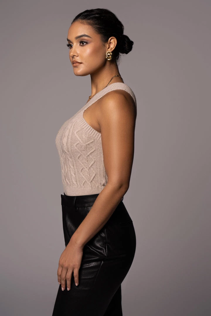 Who said sweater knit couldn’t be edgy! Our BEIGE MAKE YOU MINE TOP is proving otherwise. This stylish sweater top is featured in a cable knit fabric with a flattering asymmetric neckline and ribbed hems. Stretchy.