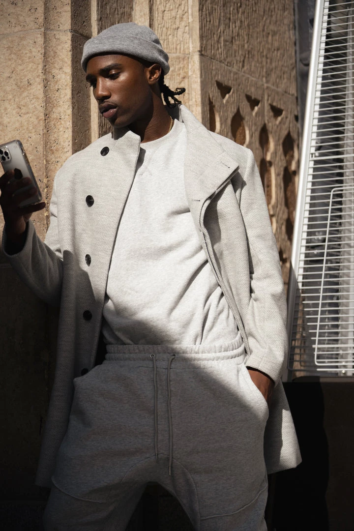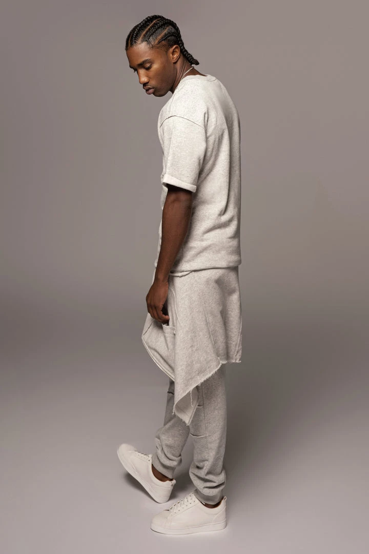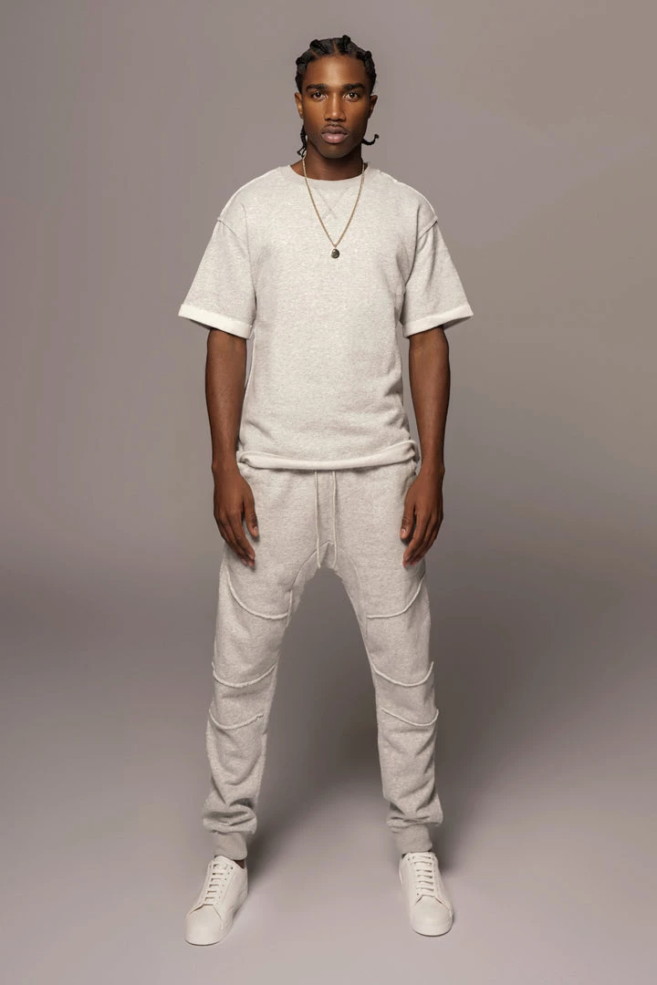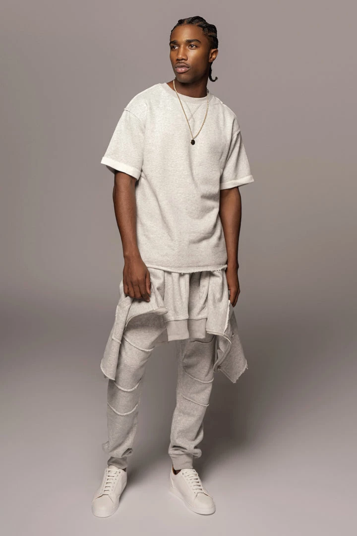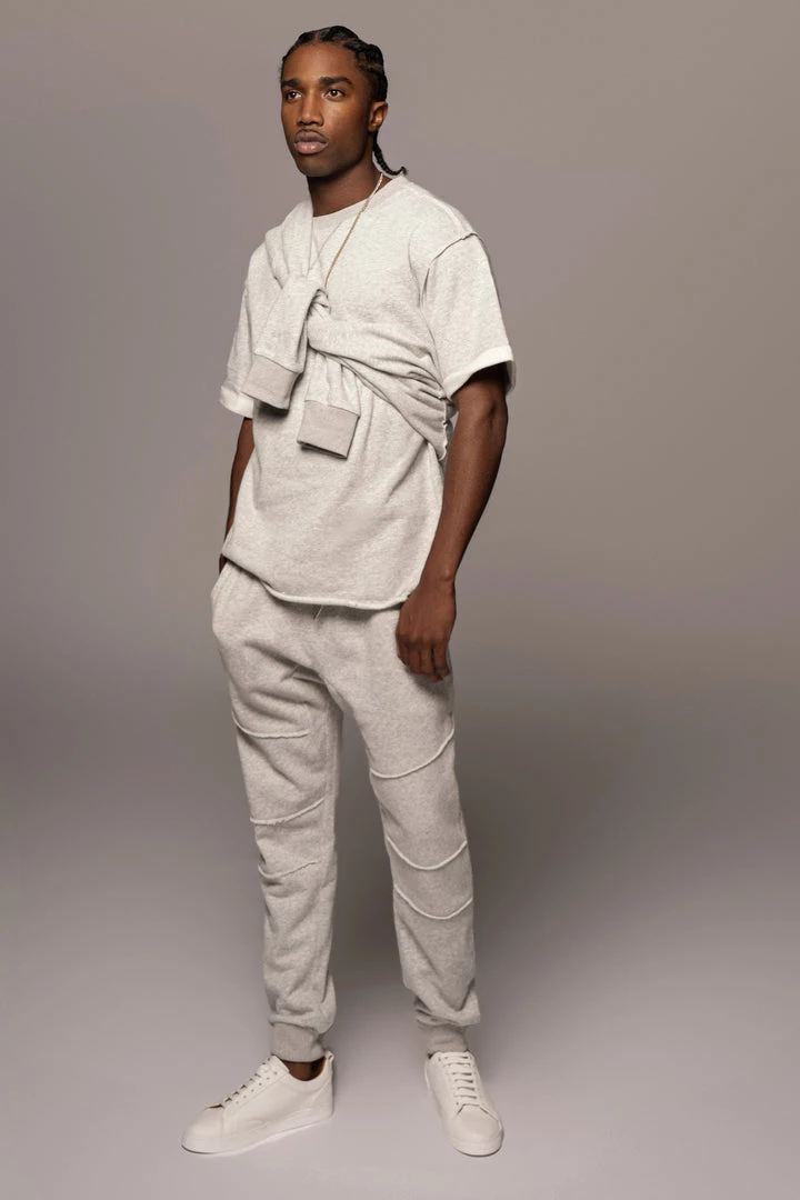 EXCLUSIVELY DESIGNED BY US FOR HIM. Style, comfort, and ease are what our new GREY KALEB JOGGERS were made for! This modern pair of Men joggers feature a ruched elastic waistband with adjustable drawstring, four functional front/back pockets, and relaxed fit legs leading down to fitted ribbed ankle cuffs. Edgy raw cut detailing throughout the design adds a finishing touch to this fresh take of joggers. Designed in ultra soft cotton fabric for easy comfort with a versatile appeal. Pair with our LOGAN RAW EDGE TEE and JORDYN MEN’S ZIP UP for the full look. Stretchy.