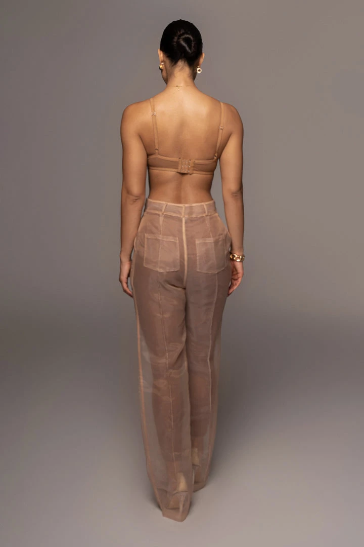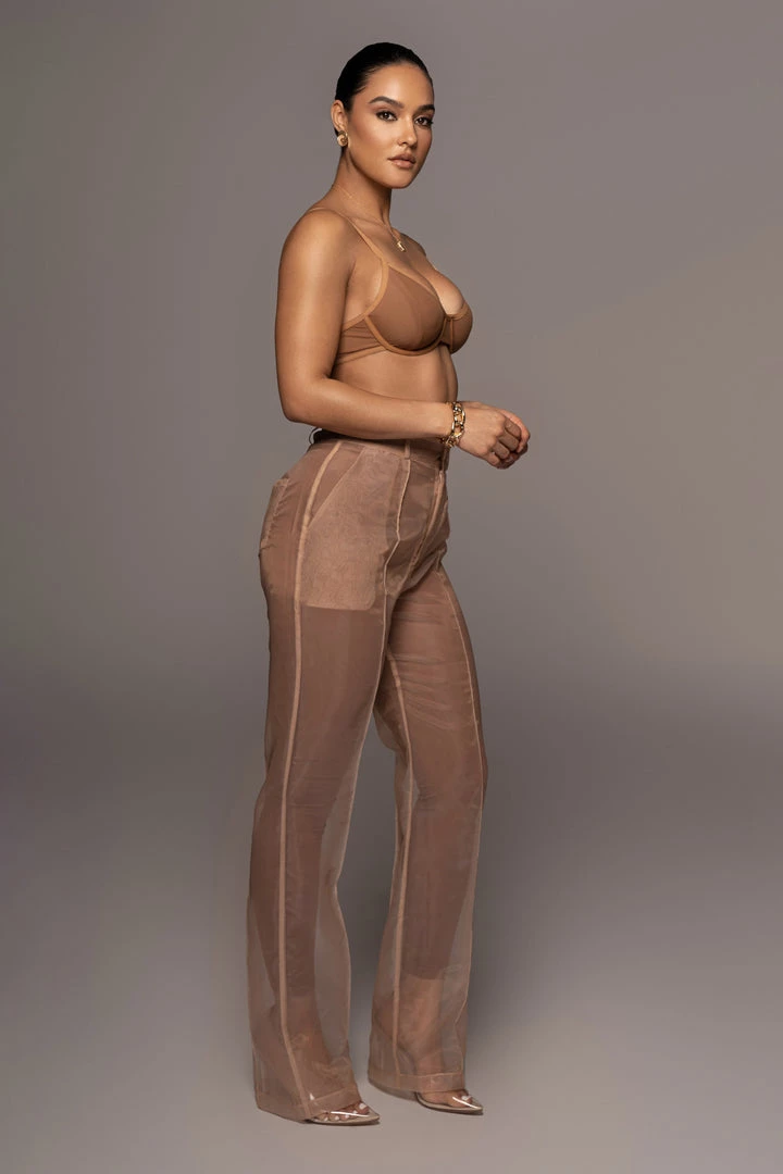 *The LIVY ORGANZA PANTS are designed to be sheer. To style them as shown use our PECAN NINA MESH PANTS as an undergarment for layering coverage. Sold Separately.