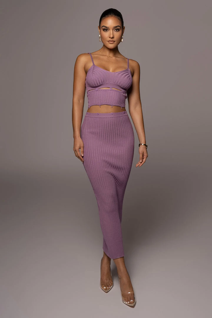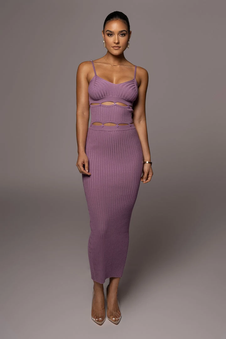 EXCLUSIVELY DESIGNED BY US FOR YOU. Show off new ways of styling with our VIOLET ELIZA MAXI DRESS. Featured in a fully ribbed knit material, this maxi dress comes with a low v-neckline, thin adjustable shoulder straps, and a stunning bodice with removable button loop attachments at the waist allowing versatile styling from a one piece dress to a two piece skirt set! Stretchy.
